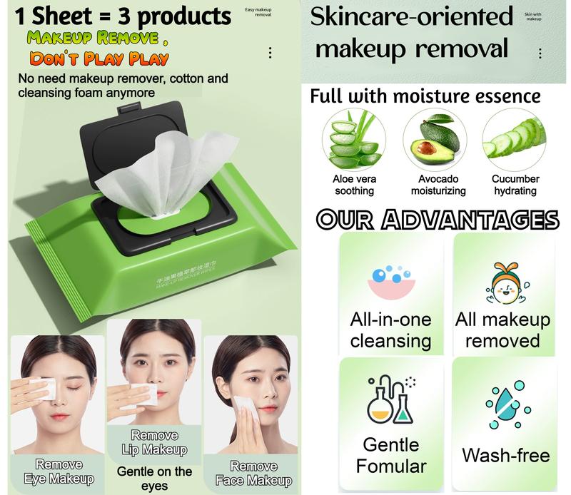Avocado fruit flavored makeup remover wipes, with an elegant taste and moisturizing properties for skincare. Convenient to carry, very satisfied