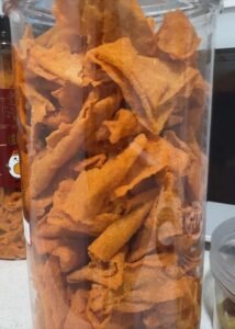 KULIT KULIT CHEESE CRISPY . Popiah skin, traditionally used in Asian cuisine to make fresh spring rolls, takes on a new and exciting role in the creation of KK Cheese. This thin and crispy wrapper serves as the base for a sensation that will have your taste buds dancing with delight. It’s a perfect harmony of textures and flavors, creating a truly unforgettable snack.